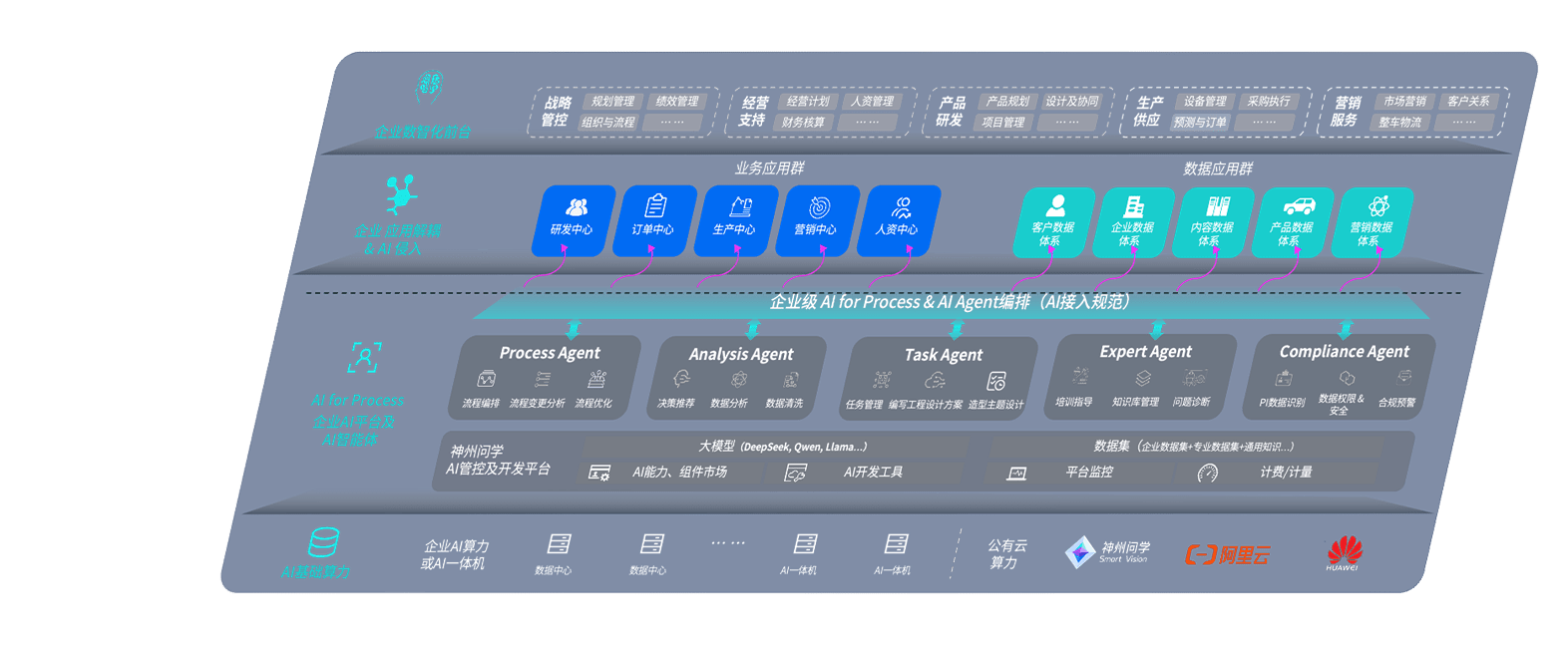 摩登7问学智车解决方案是一套基于AI技术的汽车行业智能化系统,,,,覆盖从底层算力到顶层AI应用的全栈方案。。方案由算力层、、模型层和应用层组成:算力层,,,,方案支持多种一体机配置,,具备云端灵活部署、、、多云适配以及动态优化计算资源的能力;模型层,,摩登7问学平台版提供了企业级AI应用一站式构建与管理平台,,,,支持基于后训练强化技术的汽车企业专属模型的训练、、、、评测和运营;应用层,,摩登7问学DeepSeek版提供包括超级员工、、、智能招采、、、智能营销、、、、智能客服、、、AI for BI等一系列解决方案,,可助力汽车行业实现数字化转型,,,让管理更智能、、、、响应更敏捷。。