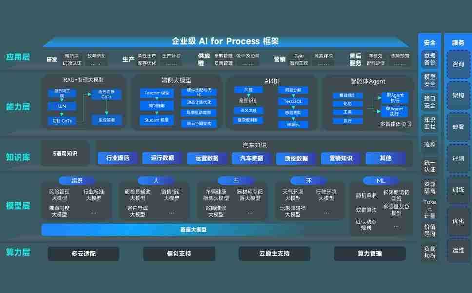 端到端的一站式AI工作空间深度融合了从企业战略规划到日常经营的全流程业务板块,,,定向解决车企内部领域多、、、部门多、、、链条长、、、、场景碎片化等难题,,,,支持车企快速构建以AI为核心的生产力写作体系,,,,实现任务执行与AI能力的无缝集成与交互